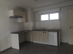 Ce logement comprend : un patio, une cuisine équipée et meublée aux couleurs actuelles ( meubles hauts et bas, plaque de cuisson vitrocéramique, hotte, frigo, emplacement pour un lave-vaisselle et four encastrable) ouverte sur le séjour.