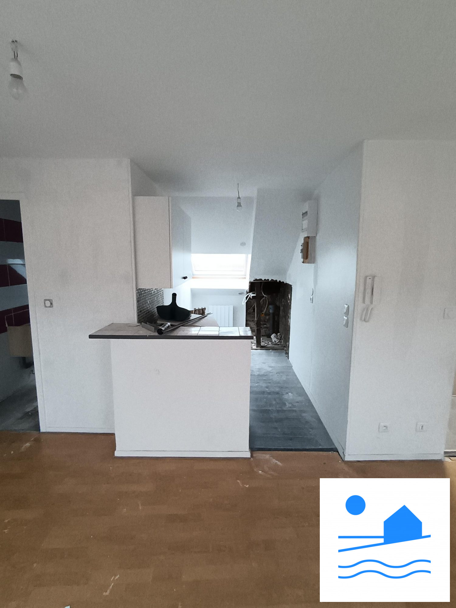 Le logement dispose d'un séjour, une cuisine et une salle d'eau avec un WC.
