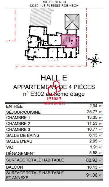 Quartier Malabry à 7 minutes du RER B station ROBINSON et du Monoprix et à deux pas du Parc Henri Sellier ainsi que divers autres espaces verts autour dont le domaine de la Vallée aux Loups. Dans une belle résidence de 1999 en pierre de taille au calme et entourée de verdure. Venez découvrir cet appartement 4 pièces de 91,97 m² vous offrant un bel espace de vie avec un séjour double sur balcon/terrasse exposé sud, une cuisine aménagée et équipée, deux chambres confortables avec la possibilité de créer facilement une troisième chambre comme sur le plan d'origine, une salle de bains avec WC, une salle d'eau, un dressing, un WC indépendant. Le bien dispose d'un parking en sous sol et d'une cave. A voir sans tarder!