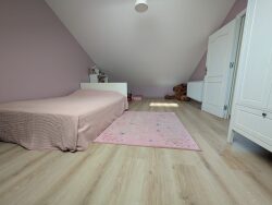 Au premier étage, un espace de vie généreux vous accueille avec ses 4 chambres lumineuses, chacune offrant une intimité préservée. Les fenêtres en PVC double vitrage laissent entrer une lumière généreuse, tandis que l'exposition sud-ouest baigne les pièces d'une douce clarté tout au long de la journée. La cuisine aménagée, ouverte sur le séjour, est un véritable lieu de partage où préparer des repas gourmands devient un plaisir.