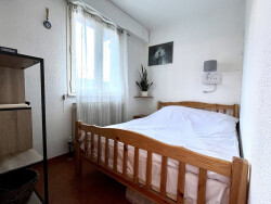 Il comprend une entrée avec grand placard, une pièce de vie lumineuse avec cuisine équipée et coin repas, une chambre double indépendante, ainsi qu'une salle de bains avec WC. La pièce principale, en angle, offre deux grandes ouvertures exposées dont une baie vitrée donnant sur un balcon exposé ouest.
