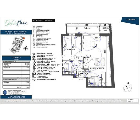 Caractéristiques du Bien : Type de bien: T2 Localisation : Les Sables d'Olonne Surface :50.30 Etage : 2ème Année de Construction : 2025 Etat Général : Neuf Gestionnaire : Eden Promotion DPE non effectué