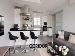 Un lumineux séjour de 25m2 avec sa cuisine moderne ouverte, meublée et entièrement équipée.