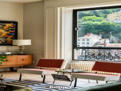 ...Ici, les grandes fenêtres en métal, attribuées à Jean Prouvé, encadrent les paysages changeants...