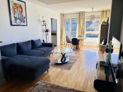 Ce bien se compose : - un très belle pièce de vie de 28m2 donnant sur le balcon et la terrasse - une grande cuisine semi ouverte, équipée et aménagée - une buanderie avec arrivée et évacuation d'eau - un wc indépendant - une jolie sale de douche - un dressing - Une première chambre de 9 m2 - une deuxième chambre de 10,8m2