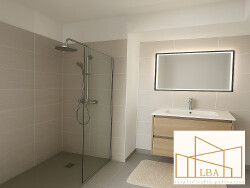 ? Appartement de 3 Pièces et de 70m², composé d'une entrée, d'un séjour-cuisine donnant sur une terrasse de plus de 26m² englobant le logement, de deux chambres dont une avec placard intégré , d'une salle d'eau entièrement équipée avec double vasque, douche et de WC séparés. Pour votre confort: carrelage au sol 60x60, ascenseur, WC suspendu, volets roulants électriques La cuisine est à prévoir par vos soins, seul l'ilot sera installé. Deux places de stationnement en sous-sol sont disponibles à la vente en sus (20 000 HAI les deux places de stationnement).