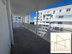 ? Appartement de 3 Pièces et de 70m², composé d'une entrée, d'un séjour-cuisine donnant sur une terrasse de plus de 26m² englobant le logement, de deux chambres dont une avec placard intégré , d'une salle d'eau entièrement équipée avec double vasque, douche et de WC séparés. Pour votre confort: carrelage au sol 60x60, ascenseur, WC suspendu, volets roulants électriques La cuisine est à prévoir par vos soins, seul l'ilot sera installé. Deux places de stationnement en sous-sol sont disponibles à la vente en sus (20 000 HAI les deux places de stationnement).