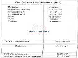? Un écrin de douceur et de modernité ? Imaginez-vous ouvrir les yeux chaque matin dans ce T3 spacieux et lumineux, où chaque détail a été pensé pour votre bien-être. Avec ses 65,78 m² de surface habitable, cet appartement est une invitation au bonheur au quotidien. Les matériaux nobles, les finitions soignées et l'agencement intelligent en font un lieu où il fait bon vivre, où chaque instant devient un moment de plaisir.