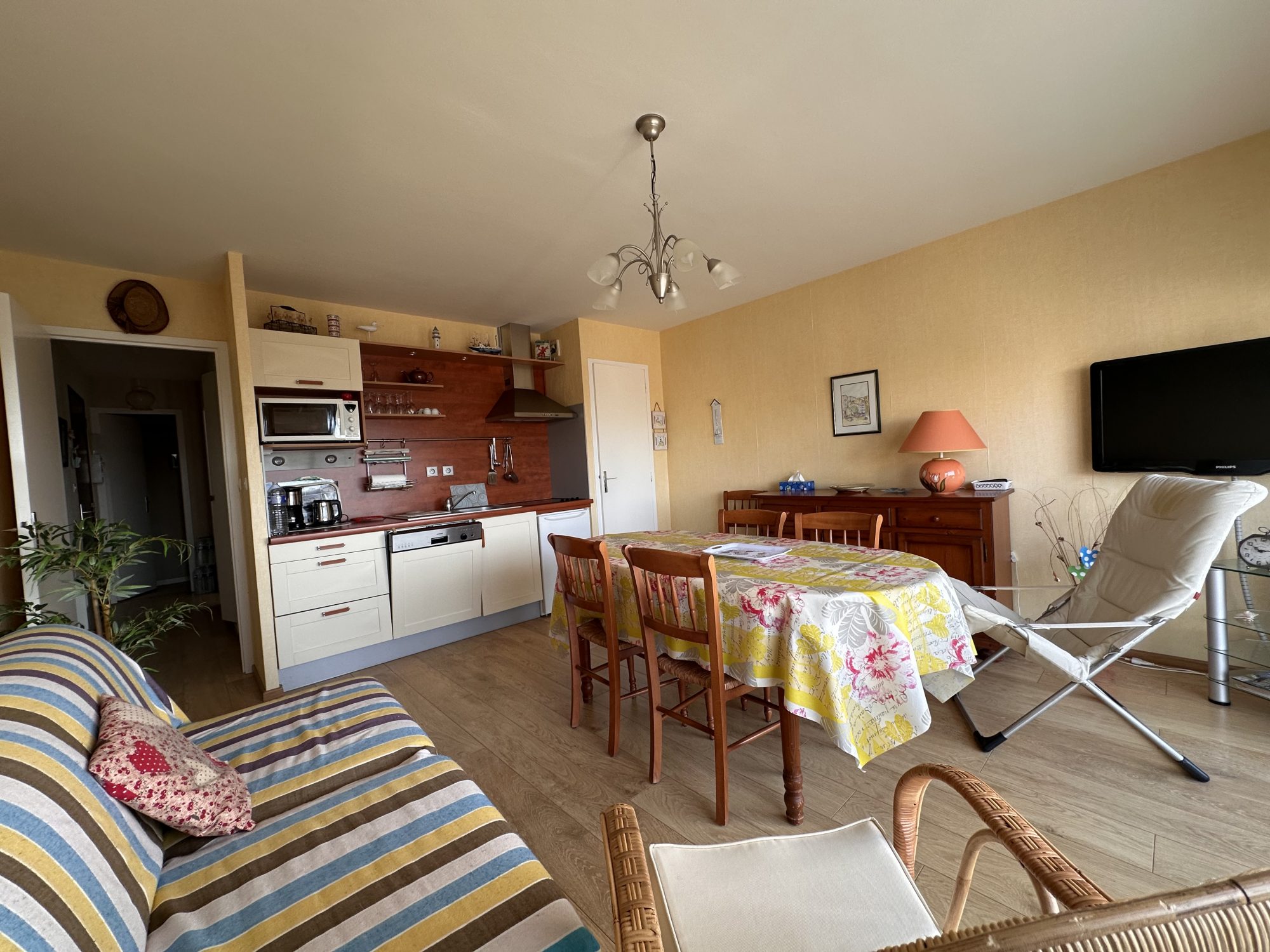 Imaginez-vous dans un séjour spacieux de 20 m², baigné de lumière naturelle, parfait pour recevoir vos proches ou vous détendre après une longue journée. Les deux chambres, douillettes et bien aménagées, vous offrent un havre de paix pour des nuits réparatrices. La cuisine équipée, de type coin cuisine, est pratique et moderne, prête à accueillir vos créations culinaires.