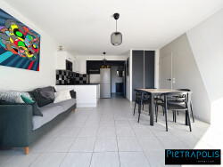 EXCLUSIVITÉ PIETRAPOLIS MEYZIEU CENTRE MAGNIFIQUE APPARTEMENT T3, prêt à vivre, d'environ 58m² de 2016 au calme Balcon sans vis-à-vis Ascenseur Tramway Meyzieu Gare à 2 min DPE C. Appartement récent prêt à vivre PARFAIT ÉTAT : AUCUN TRAVAUX Centre de Meyzieu, toutes commodités à proximité immédiate ! DPE C + immeuble de 2016 + normes PMR Séjour lumineux avec baie vitrée ouvrant sur un balcon de 10m², exposé sud et sans vis-à-vis. Faibles charges mensuelles Exposition sud Un grand espace vert commun + un local vélo fermé/sécurisé Prestations : ascenseur, visiophone, moustiquaires, store banne, brise-vue, cuisine équipée/aménagée. Possibilité d'acquérir un garage (box fermé) en souterrain, en sus ! ? Emplacement idéal :Tram : T3 à 2 min à pied (direction Gare Part-Dieu Villette/Meyzieu les Panettes) 25 min pour arriver à la gare de la Part-Dieu. Bus : 67, 85, 95. Accès Rocade Est (RN 346) en 3 min en voiture. Commodités à proximité (boulangeries, pharmacie, laboratoire, banques, Vival, restauration, accessibles en quelques minutes à pied ; centre commercial Leclerc Meyzieu à 3 min en voiture. Crèches, écoles, collège et lycée en moins de 10 min en voiture !