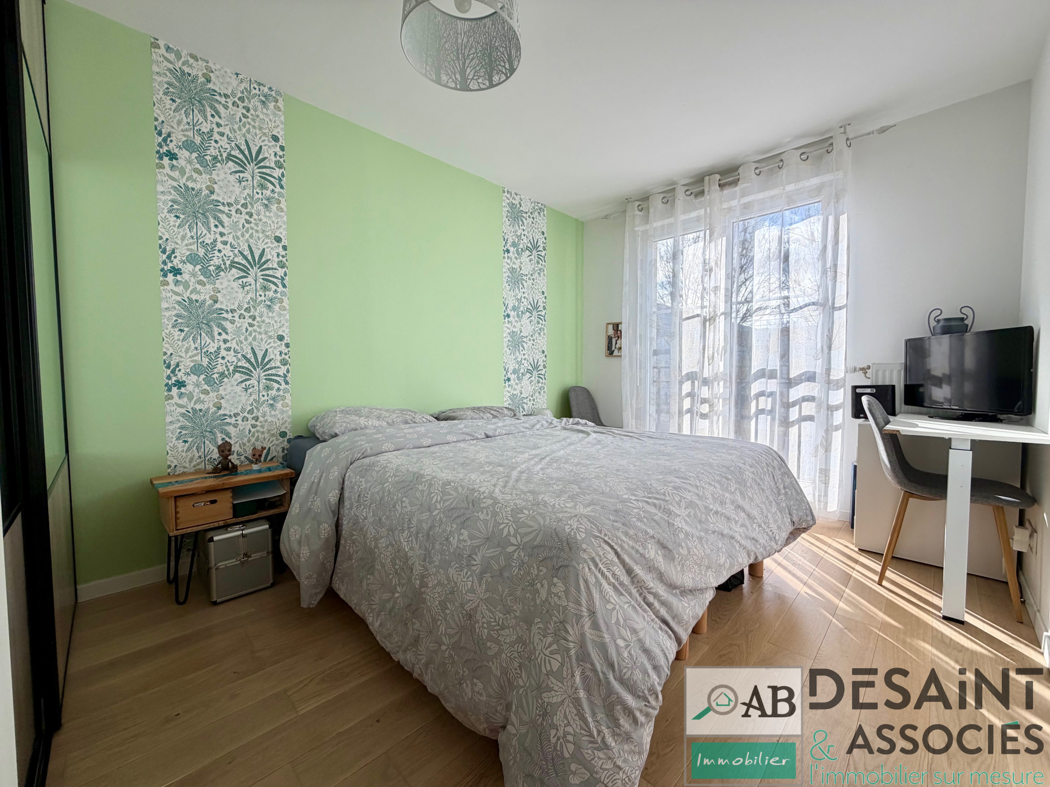 La chambre, confortable et bien aménagée, vous garantit des nuits paisibles. La salle de bains, contemporaine et fonctionnelle, ainsi que les toilettes séparées, complètent ce tableau de vie harmonieuse.