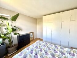 Un couloir donne ensuite accès aux deux chambres (une petite aménagée en bureau de 8 m², l'autre plus grande de 12 m²), de part et d'autres du couloir ainsi qu'à sa salle d'eau avec wc et douche à l'italienne. Enormément de rangements au sein de l'appartement avec notamment un grand dressing dans la chambre principale ainsi qu'un profond placard en bout de couloir.