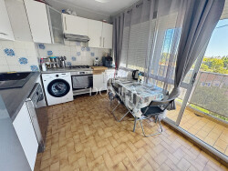 Ce bien se compose d'une entrée avec rangements, d'un séjour lumineux ouvrant sur une terrasse exposée plein sud, sans vis-à-vis, ainsi que d'une cuisine équipée à rafraîchir. Côté nuit, vous trouverez deux chambres avec placards intégrés, une salle de bains et des WC séparés. Une cave ainsi qu'une place de parking privative complètent les prestations de ce logement.
