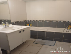 Deux chambres, un balcon de 11,20 m² et d'une terrasse de 19 m², un double garage complète ce bien.