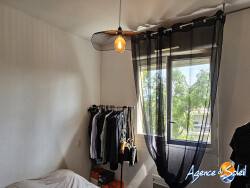 Quartier Réveillon, au deuxième et dernier étage, T2 de 38m2 composé d'un salon/kitchenette donnant sur une terrasse de 8.23m2 avec vue étang de Bages, chambre, salle d'eau/Wc. Menuiseries Double vitrage PVC, chauffage électrique. Place de parking privative. 102 lots/778 euros charges/ans (eau froide comprise). Disponible 02/26. Pour Visiter, contacter Marie Lise CLAVIERES au 06 13 08 63 48 ou vente.clavieres@agencedusoleil.com
