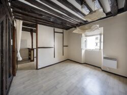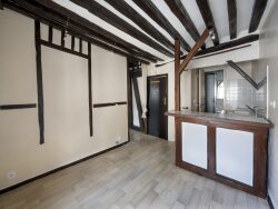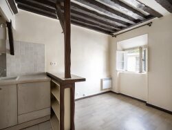 Charmant et bel appartement ancien de 2 pièces donnant sur rue avec une exposition ouest, situé au 4ème et dernier étage (sans ascenseur) d'un petit immeuble bien entretenu et agréable offrant un cadre privilégié, comprenant : un séjour fonctionnel avec un espace cuisine bien agencé, une grande chambre offrant un très bel espace de rangement et une salle d'eau avec un WC. Fibre optique - Poutres apparentes - Vitrage doublé.