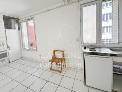PARIS XVII - EPINETTES - PORTE DE CLICHY/BROCHANT A proximité immédiate du Tribunal, dans un immeuble sur rue calme, nous vous proposons un studio de 13,94 m² comprenant une pièce avec un coin cuisine et un coin rangement, une salle d'eau avec douche et lavabo, des WC séparés. Très lumineux. Idéal investissement locatif. DPE D.