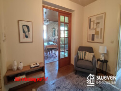 Perpignan, proche universités, au 1er étage d'une maison 3 faces en R+2, au calme d' une impasse, bel appartement type T4 d'environ 100m2 habitables + dépendances au rez de chaussée de plus de 40m2. Cet appartement est composé d'une belle entrée, un séjour/salon de 35m2 environ, 3 belles chambres avec placards, cuisine indépendante de plus de 12m2, une salle de bain et un wc séparé. Au rez de chaussée, un couloir/dégagement dessert une chambre, un grand bureau, une salle archives, un wc avec point d'eau + un débarras sous-escalier. Un garage avec porte motorisée + arrière garage (18m2+6m2) ainsi qu'un jardin commun de plus de 190m2 complétent ce bien. Les ouvertures sont en bois simple vitrage et volets bois. Le chauffage est assuré par une chaudière fioul , le séjour, une chambre et bureau rez de chaussée disposent d'une climatisation. Les sols sont en parquet, carrelage et moquette. Les dépendances du rez de chaussée peuvent rester des pièces annexes ( bureau,cave,buanderie, rangement...) ou devenir des bureaux sans travaux, profession libérale ou logement indépendant après travaux. Un système d'alarme est déjà en place. Ce bien est en copropriété sans syndic et sans charges. Construction traditionnelle des années 70 à proximité des commerces, écoles, services publics et transports.