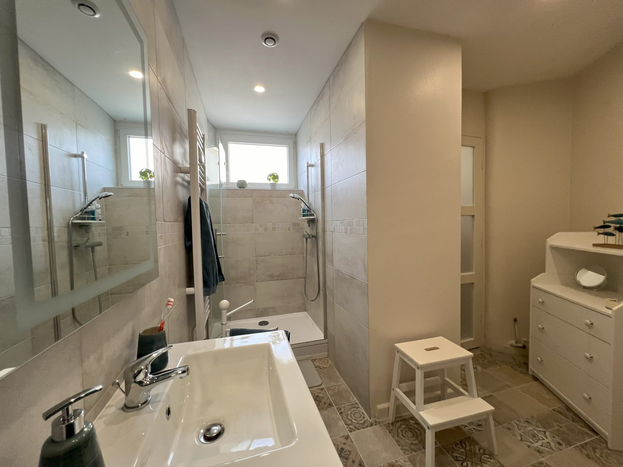 En franchissant le seuil, vous découvrirez une entrée fonctionnelle avec placard, un WC indépendant, ainsi qu'une pièce à usage de buanderie, idéale pour optimiser le rangement. Le séjour, spacieux et baigné de lumière, constitue un véritable espace de vie convivial, avec un coin cuisine à aménager selon vos goûts et besoins. La chambre, confortable et équipée de rangements intégrés, dispose de sa propre salle d'eau privative, pour un maximum de praticité au quotidien. À l'extérieur, une belle terrasse vous attend, parfaite pour vos repas en plein air, vos moments de détente ou vos soirées d'été entre amis. Pour compléter ce bien, une place de stationnement extérieur est mise à votre disposition.