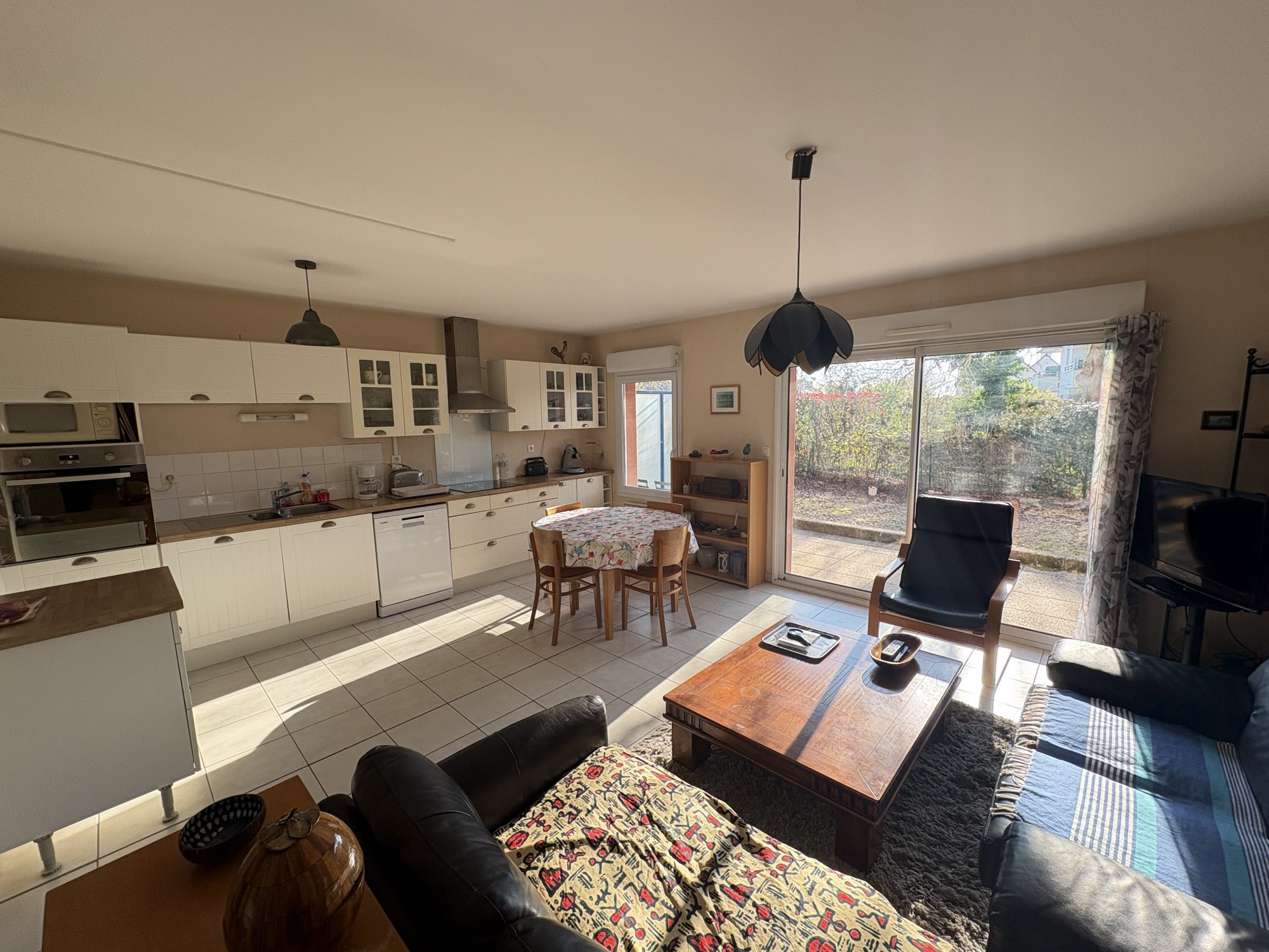 Appartement T3 Lumineux 60m² avec Terrasse de 40 m² Situé dans une bâtisse du XIXème, découvrez ce magnifique appartement T3 de 60.19 m², niché au coeur d'un écrin de verdure. Cet appartement offre un séjour spacieux de 36 m² avec poêle à bois, hauteur sous plafond parfait pour des moments de détente en famille ou entre amis. La cuisine aménagée et équipée, les deux chambres et la salle d'eau, vous garantissent confort et convivialité.