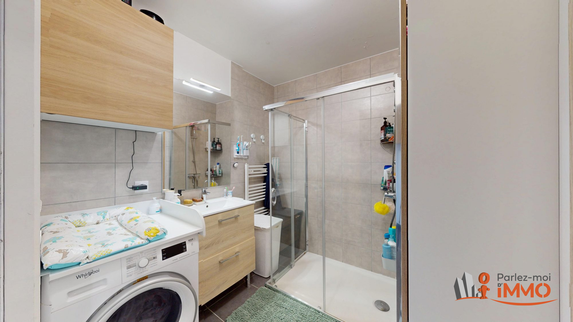 Dès l'entrée, vous serez accueilli par un dégagement, qui dessert les espaces fonctionnels de l'appartement, à savoir une salle de bain moderne avec un WC. Ce dégagement mène ensuite à un séjour lumineux, idéal pour recevoir, une cuisine ouverte, offrant un espace convivial et une chambre.