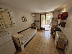 Vous y trouverez une salle d'eau avec wc, une chambre comprenant des lit superposés et un salon cuisine de 14 m² donnant accès à une terrasse.