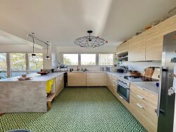 Il se compose d'un salon donnant sur un grand balcon exposé sud, d'une cuisine équipée ouverte sur la salle à manger donnant également sur un balcon, de deux dégagements avec placards, 4 chambres, d'une salle d'eau, d'une salle de bain et deux WC.