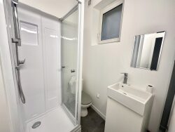 Ce bien se compose : - une pièce de vie donnant sur la terrasse - terrasse de 10m2 ( également refaite ) - un coin cuisine - une grande chambre avec rangement et emplacement pour commode ou bureau - salle de douche avec wc