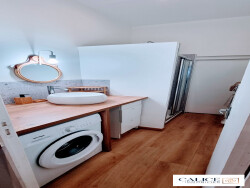 Découvrez ce magnifique appartement de 50 m² entièrement refait à neuf avec des matériaux de qualité, situé au premier étage d'une petite copropriété, dans un quartier paisible et bien desservi. Ce deux-pièces lumineux et spacieux est idéal pour les jeunes couples ou pour une résidence secondaire en quête d'un cadre de vie agréable. Imaginez-vous dans cette ambiance moderne. La cuisine ouverte s'intègre parfaitement dans le salon, créant un espace de vie convivial et chaleureux, avec une belle cheminée. La grande fenêtre laisse entrer une lumière naturelle et ouvre sur un petit balcon. La chambre à coucher, spacieuse et calme, une salle de bain moderne et fonctionnelle complètement rénové.