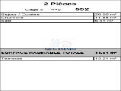 Découvrez ce magnifique appartement T2 de 44,84 m², niché dans un cadre de vie paisible et ensoleillé. Ce bien immobilier allie confort et élégance, offrant une surface habitable généreuse et une terrasse de 15 m² pour des moments de détente inoubliables.