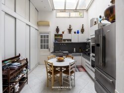 D'une surface d'environ 92 m², l'appartement se distingue par ses volumes généreux et sa belle hauteur sous plafond. Le loft s'ouvre sur une jolie cuisine éclairée naturellement par un puits de lumière, un vaste espace de réception de près de 40 m² réunissant séjour et salon, deux chambres dont l'une bénéficiant d'un aperçu sur la mer, une salle de bain ainsi que des toilettes séparées.