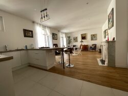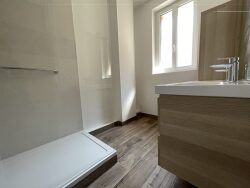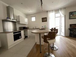 Appartement F4 de 96 m² avec ascenseur et belles prestations composé d'une belle entrée spacieuse desservant un beau séjour parqueté avec balcon et cuisine ouverte aménagée et équipée ( four , hotte et plaques) , arrière cuisine , deux belles chambres parquetées avec balcon , salle d'eau , wc et buanderie .