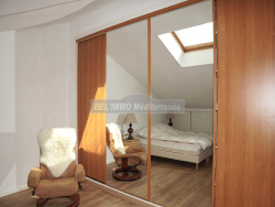 A proximité du Centre-Ville, au calme ! Dernier étage avec ascenseur d'une petite résidence sécurisée, ce charmant appartement de 48 m2 au sol (40,57 m2 Loi Carrez) comprend : entrée, séjour, cuisine américaine équipée, salle d'eau meublée, WC séparés, et à l'étage : mezzanine avec penderie aménagée. Appartement climatisé et vendu meublé. Terrasse exposée Sud-Est. Parking privatif. - BEL IMMO Cavalaire - Tél. 04.94.00.44.55. - info@bel-immo.com - www.bel-immo.com -