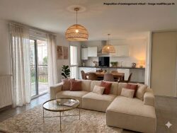 Appartement avec terrasse, au 3ème et dernier étage d'une petite copropriété. Ce logement entièrement réhabilité se compose: Entrée, cuisine ouverte donnant sur terrasse, salon en mezzanine, 2 chambres, wc, salle d'eau, mezzanine servant de chambre d'appoint ou bureau ainsi qu'une petite pièce indépendante sur le palier. Terrasse tropezienne vue sur Glandasse. Cuisine aménagée et équipée. Superficie au sol: 90 m², superficie carrez: 74 m². Chauffage: Poële à granules + clim réversible dans chaque pièce.