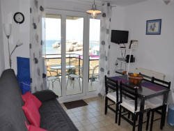 1 chambre- Une pièce à vivre avec partie cuisine aménagée et partie séjour donnant sur terrasse avec vue mer panoramique- Superbe situation au pied de la Plage- RARE-