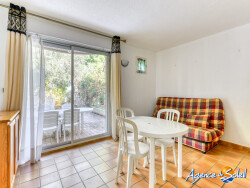 NARBONNE-PLAGE- Appartement cabine en rez-de-chaussée disposant d'une belle terrasse et d'un jardin. L'appartement vous donne accès à la piscine et a une place de parking privé. Résidence très agréable à Narbonne Plage à 10 minutes de la plage. Une visite ? une info? contactez Sophie 06.74.58.23.23