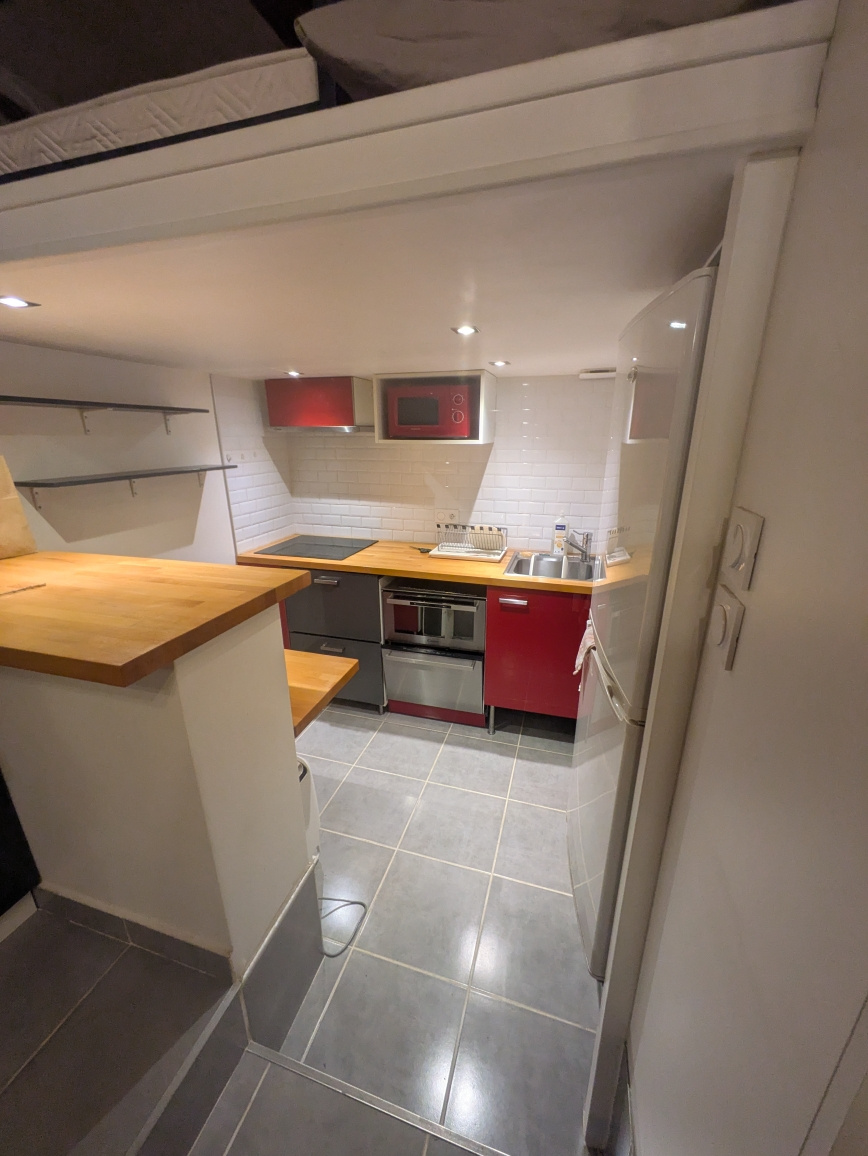 Au 1er étage de l'immeuble (avec ascenseur), l'appartement dispose du caractère typique du canut : poutre en bois, hauteur sous plafond, pierres apparentes. Avec ses 25 m² habitables et ses 35 m² au sol, vous disposerez d'une pièce de vie lumineuse, d'un coin cuisine, d'une salle d'eau avec WC. Côté nuit, l'espace en mezzanine permet d'avoir une chambre isolée.