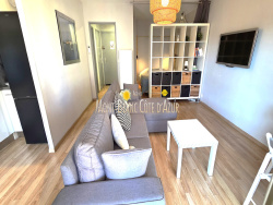 Situé dans une résidence très recherchée, bel appartement comprenant une entrée, un séjour ouvrant sur terrasse, une cuisine américaine équipée, coin-nuit, une salle d'eau, un cellier, des placards. Une place de parking privée en sous-sol. Climatisation, volets roulants électrique, gardien dans la résidence. Jolie vue sur la piscine, exopsition plein sud. Situé en étage élevé. Résidence de standing, tous commerces et plages à pied. Disponible le 1er octobre 2026. Coup de coeur assuré !