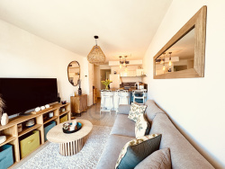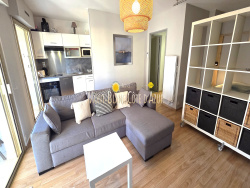 Situé dans une résidence très recherchée, bel appartement comprenant une entrée, un séjour ouvrant sur terrasse, une cuisine américaine équipée, coin-nuit, une salle d'eau, un cellier, des placards. Une place de parking privée en sous-sol. Climatisation, volets roulants électrique, gardien dans la résidence. Jolie vue sur la piscine, exopsition plein sud. Situé en étage élevé. Résidence de standing, tous commerces et plages à pied. Disponible le 1er octobre 2026. Coup de coeur assuré !