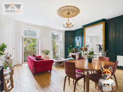 Un intérieur plein de charme et d'histoire : Superficie : 86 m² Superbe parquet massif dans la majorité des pièces Élégantes moulures au plafond Magnifique cheminée avec tubage Belle hauteur sous plafond de 3,10 m dans le salon Nombreux rangements intégrés Huisseries PVC double vitrage (4/16/4) Volets mécaniques Chauffe-eau neuf (installé cette année)
