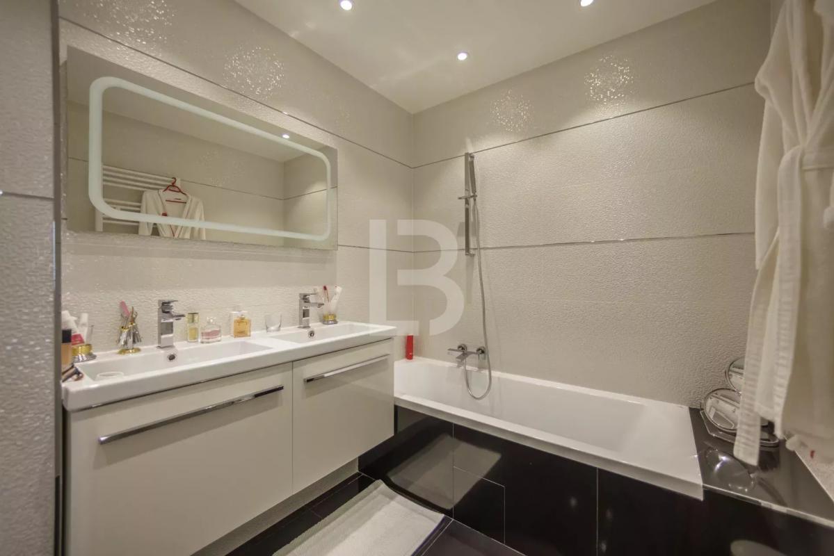 Ascenseur privatif, arrivant directement dans l'appartement Hall d'entrée majestueux, avec grand placard de rangement, penderie et WC invité Séjour lumineux de 35 m2, exposé plein Sud et ouvrant sur la terrasse Cuisine spacieuse et séparée, entièrement équipée Quatre chambres en suite, chacune avec sa salle de bain privative Master suite avec dressing Buanderie fonctionnelle Garage en sous-sol Cave privative