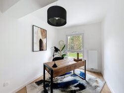 Le coin nuit abrite trois chambres confortables, dont une suite de 14 m² avec salle d'eau et toilettes, tandis que les deux autres chambres de 12 m² et 11 m² se partagent une salle de bain raffinée de 5 m², offrant un parfait équilibre entre intimité et confort