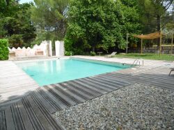 A vendre au Beaucet joli village des monts de Vaucluse à proximité de Saint Didier et à 10 minutes de Carpentras, charmant appartement au 1er étage, 3 pièces avec mezzanine dans un domaine arboré avec piscine.
