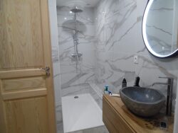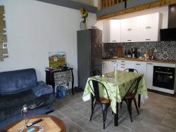 . Cuisine entièrement équipée ouverte sur un séjour de 24m² . Une chambre de 9 m² . Une salle d'eau moderne avec WC 8m² . Une chambre mezzanine de 15m² pour un espace nuit , bureau ou coin détente.