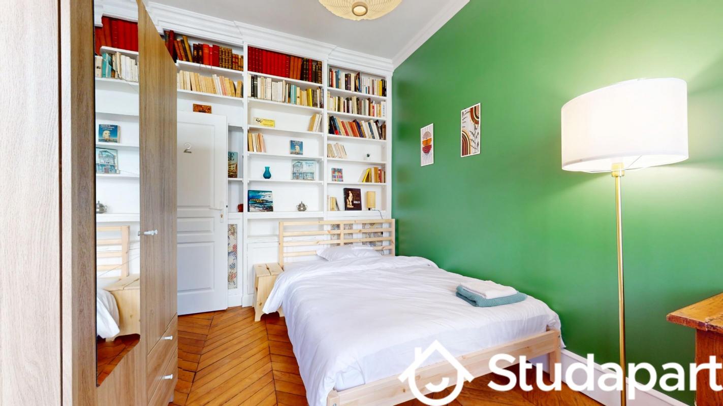 Chambre rénovée donnant sur cours/jardin avec espace cuisine, douche privative, WC , proche de l'université Dauphine PSL et du lycée Janson de Sailly.