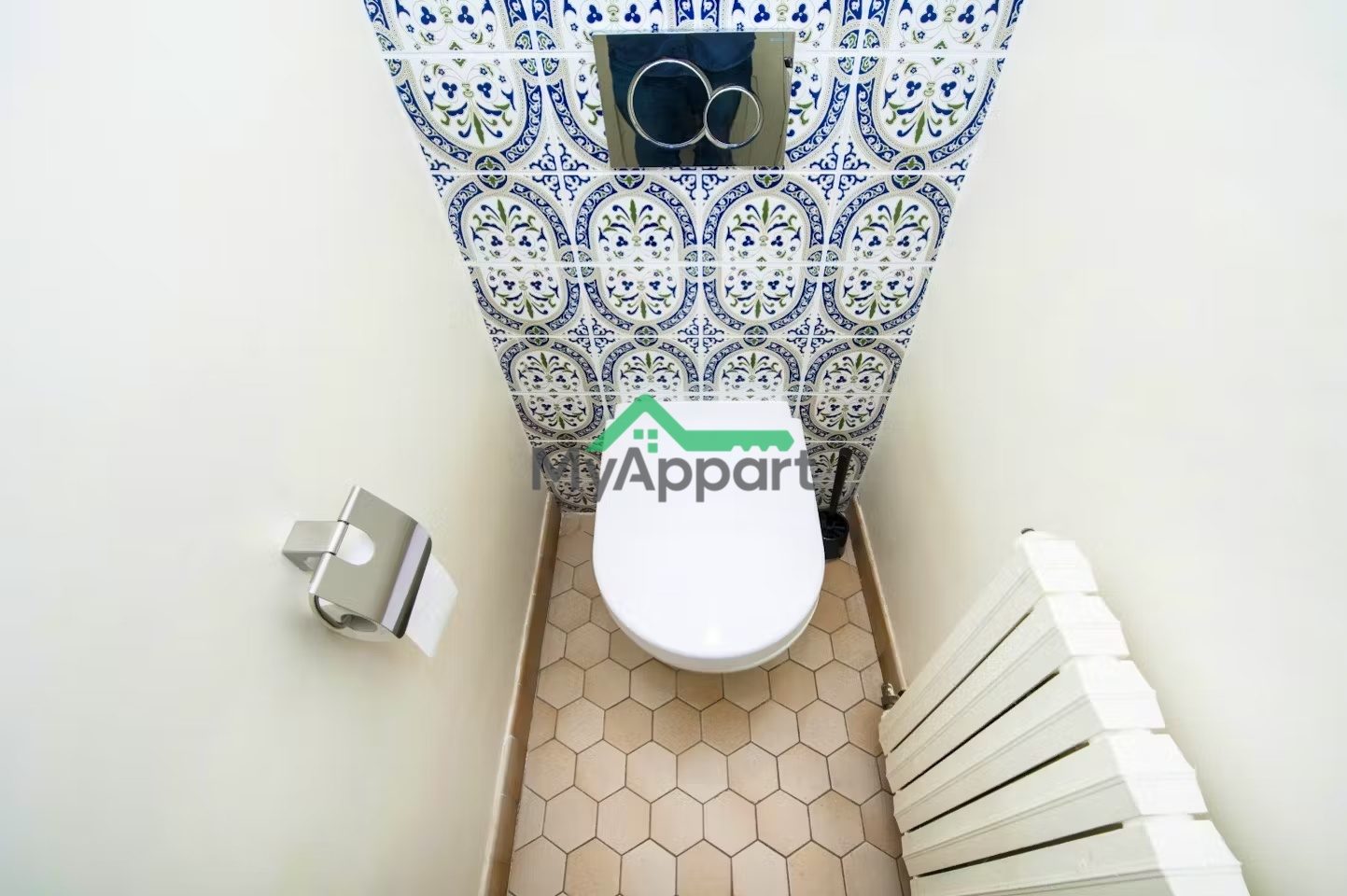 Completely renovated recently by an interior architect, the studio is completely furnished and well equipped (washing machine, double bed, dining table, curtains, microwave, iron, vacuum cleaner, refrigerator, linens, kitchen utensils, even towels and sheets)