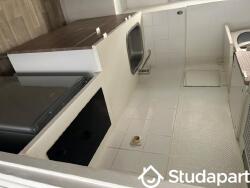 Ce studio comporte , une petite cuisine avec plaques de cuisson, hotte, micro-ondes ainsi qu'un frigo.