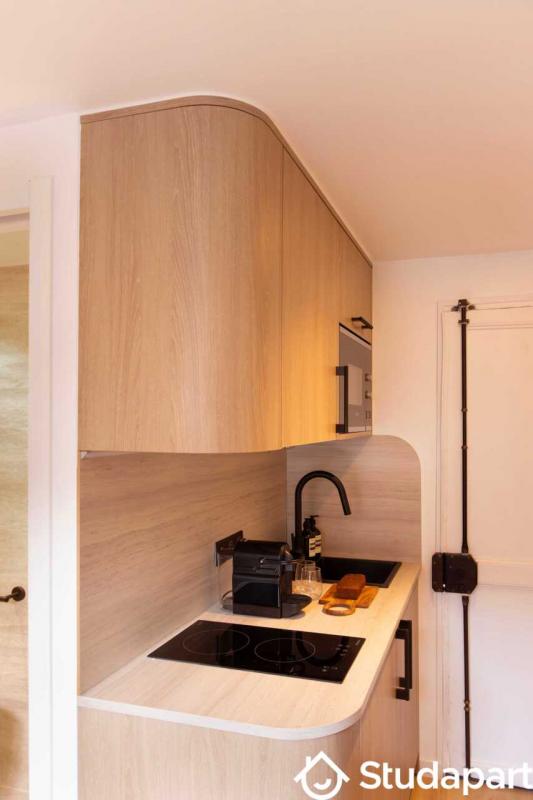 Il s'agit d'un studio de 14m² situé au 6eme étage (ascenseur jusqu'au 5eme étage puis escalier jusqu'au 6eme étage).