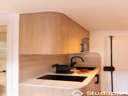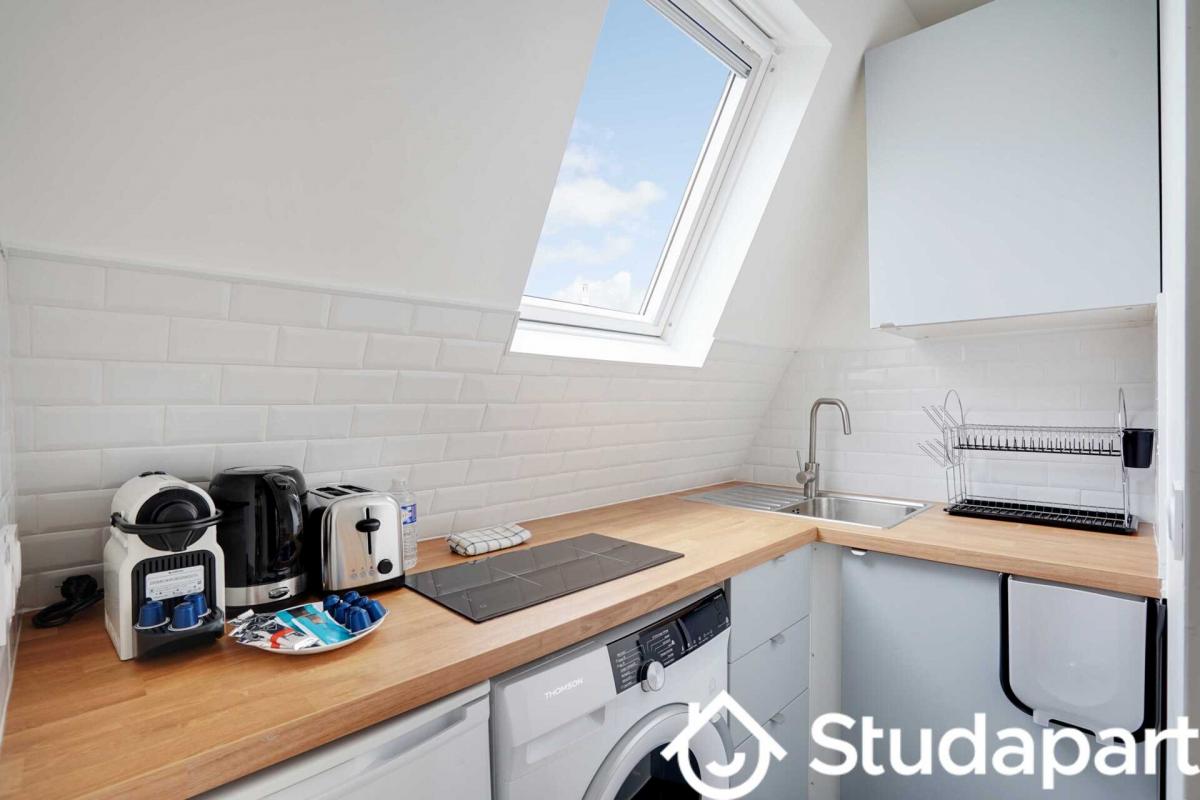 - Une cuisine ouverte équipée et fonctionnelle : frigidaire, plaques de cuisson, machine à café, grille-pain, bouilloire, micro-ondes, machine à laver ...