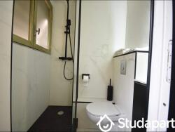 Une douche, lavabo et des WC suspendu.